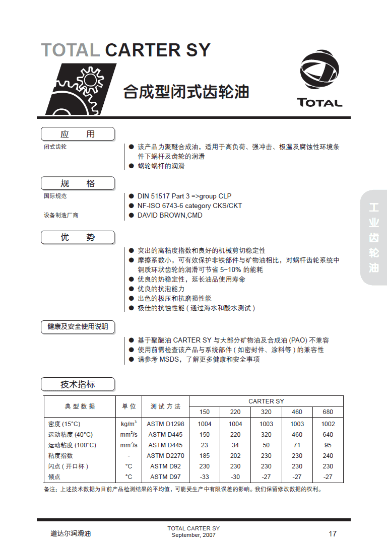 品牌:道达尔 型号:科塔尔(CARTER)SY460 产地: 中国 容量:18L和208L 价格:价格便宜,欢迎来电咨询